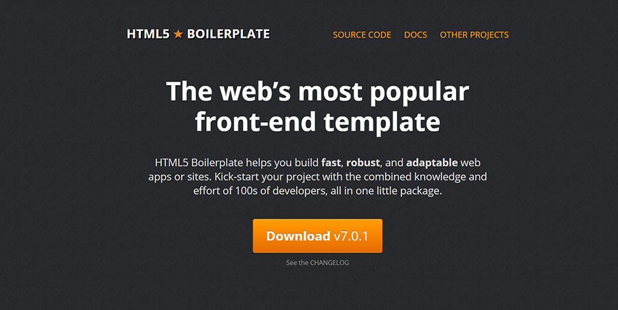 HTML5 Boilerplate helps you build fast, robust, and adaptable web apps or sites. Kick-start your project with the combined knowledge and effort of 100s of developers, all in one little package.