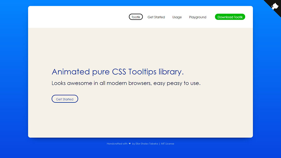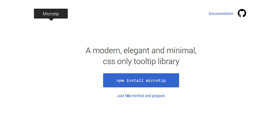 A modern, elegant and minimal, lightweight css only tooltip library. Just 1kb minified and gzipped.
